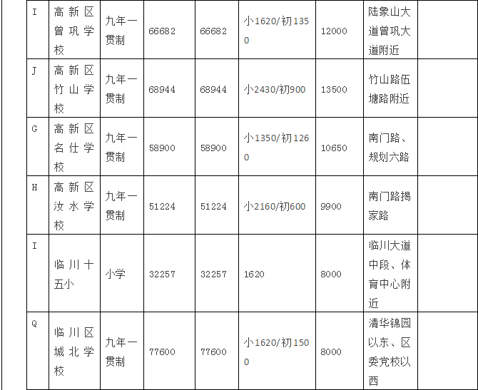 近期臨川城區(qū)擴建5所小學(xué),為偉星小學(xué)、高新二小、高新三小、臨川一小、小圩小學(xué);擴建1所九年一貫制學(xué)校,為金巢實驗學(xué)校;擴建2所完全中學(xué),為撫州一中、臨川十六中。