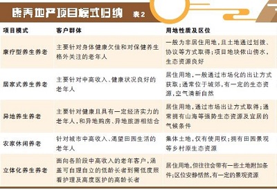 其中,康療型養(yǎng)生養(yǎng)老項(xiàng)目最為典型。以中房智庫(kù)調(diào)研過(guò)的成都溫江國(guó)際醫(yī)學(xué)城項(xiàng)目為例,該醫(yī)學(xué)城總面積65平方公里,包含醫(yī)療服務(wù)區(qū)、康復(fù)養(yǎng)生區(qū)、商務(wù)配套園區(qū)三個(gè)區(qū)域,不僅為市民、老年人、社會(huì)群體等提供現(xiàn)代、周到的健康休閑服務(wù),還可為西部中高收入階層和長(zhǎng)期居住的外籍人士提供高水平的醫(yī)療服務(wù),融合尋醫(yī)養(yǎng)生、生態(tài)觀(guān)光、休閑旅游、國(guó)際交流等功能于一體。農(nóng)家休閑養(yǎng)老以聯(lián)眾集團(tuán)的城仙居項(xiàng)目為例,聯(lián)眾集團(tuán)在全國(guó)環(huán)境優(yōu)美的鄉(xiāng)村布局,在鄉(xiāng)村景區(qū)周邊利用農(nóng)村閑置資源建設(shè)度假物業(yè),將鄉(xiāng)村旅游和鄉(xiāng)村公寓融合,為城市家庭提供專(zhuān)業(yè)的鄉(xiāng)村度假服務(wù),滿(mǎn)足城市人回歸田園的精神渴望。